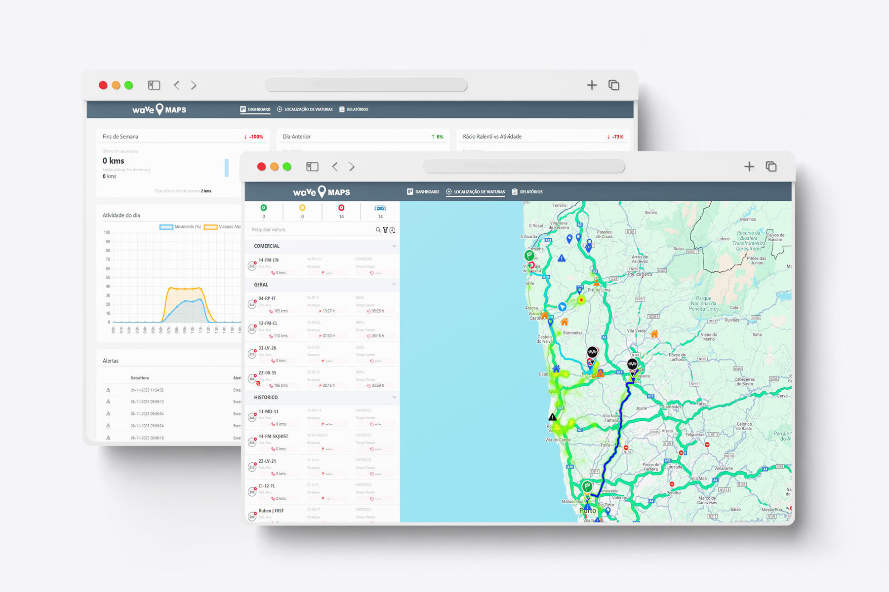 O Wave Maps foi concebido para garantir um controlo e gestão eficaz da sua frota, permitindo consultar e programar o envio por email de relatórios de viagens, gerir os custos, configurar alertas, avisos e muito mais.