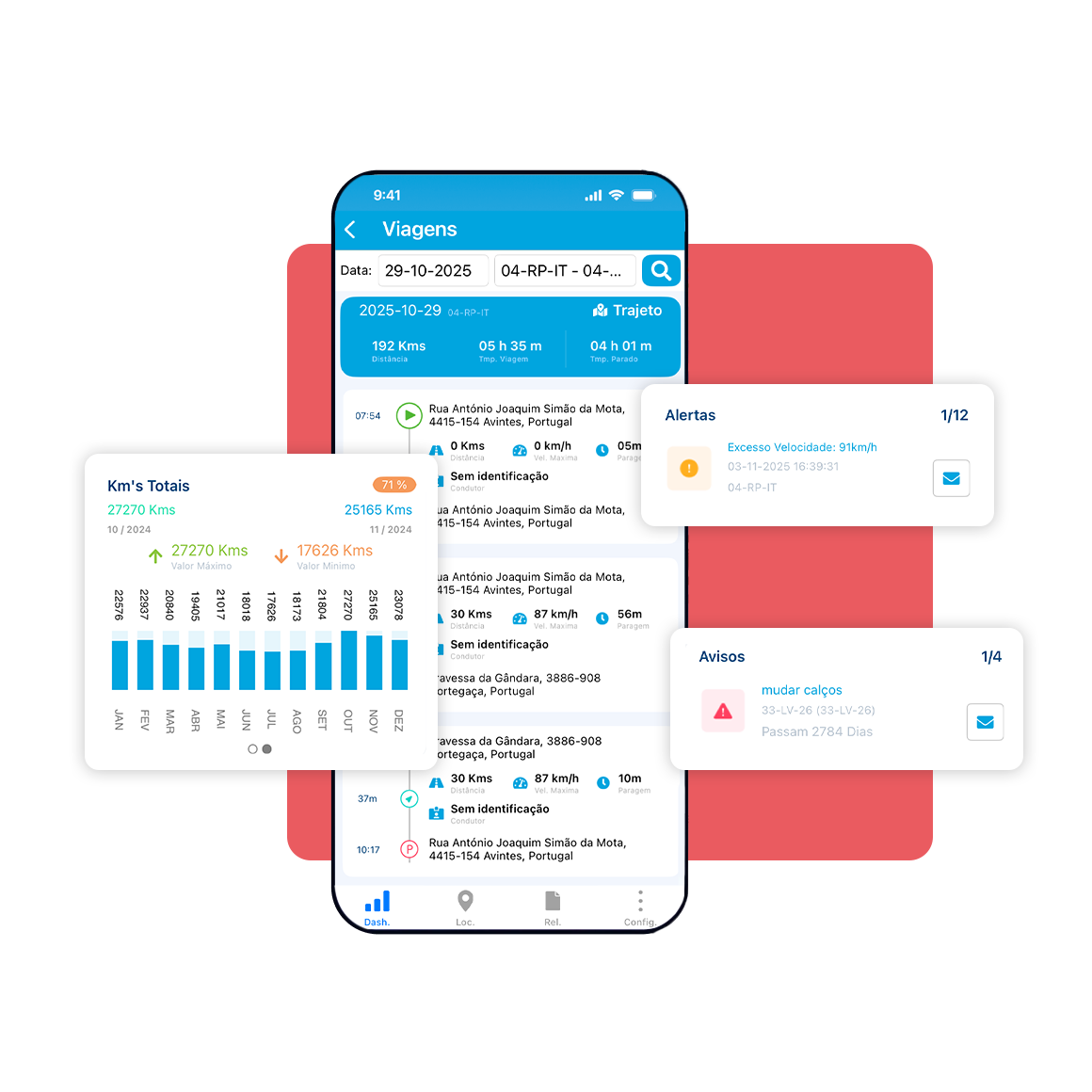 Através do Dashboard, obter diversas analises através do totalizador dos km’s efetuados no ano anterior, visualização e partilha de Alertas e Avisos e muito mais.