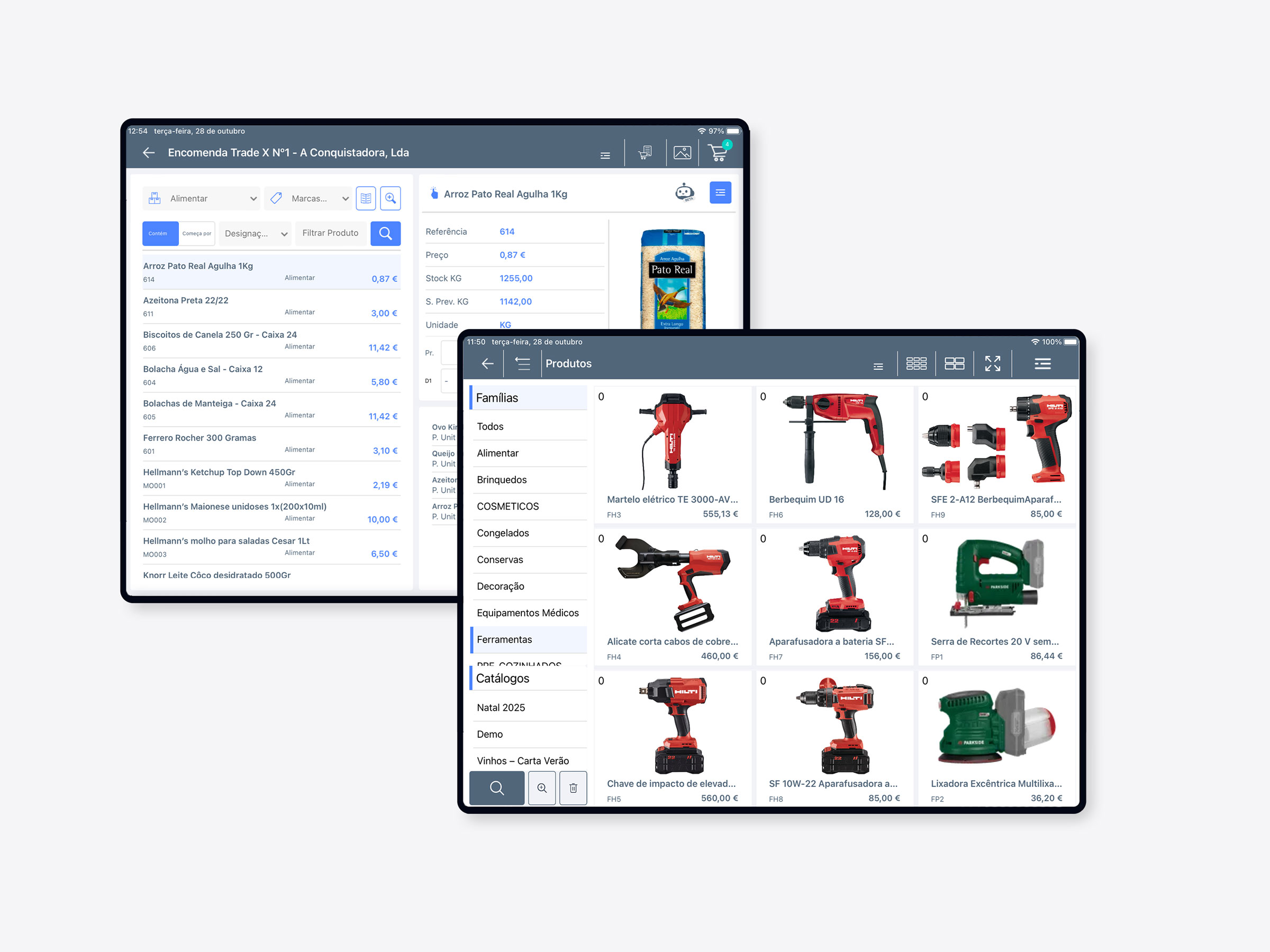 A APP de tablet funciona com base de dados local, mesmo que não disponha de internet o desempenho é sempre garantido com a mesma agilidade. O acesso à internet é necessário para sincronizar ou aceder a funcionalidades imediatas, como a consulta de stock em tempo real ou o acesso a funcionalidades de inteligência artificial.